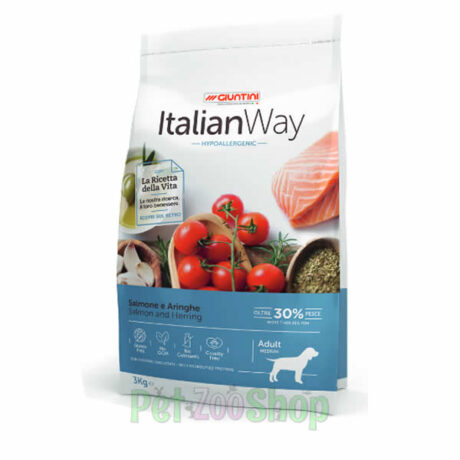 Hipolergena suva hrana za pse srednjih i velikih rasa sa lososom i haringom, namenjena psima sa osetljivim varenjem i kožom.