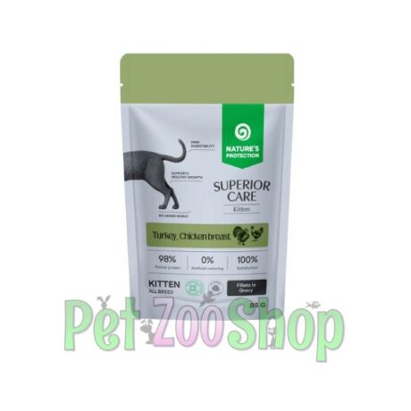 Ukusni komadići u sosu sa 85% sastojaka životinjskog porekla, uključujući piletinu i ćuretinu. Idealna mokra hrana za mačiće, podržava rast, pravilan razvoj i zdravlje digestivnog sistema.