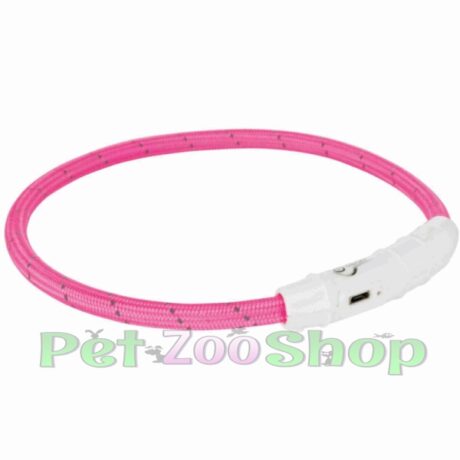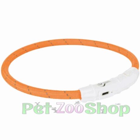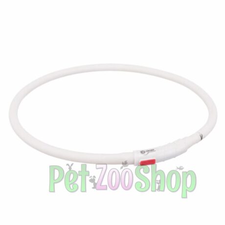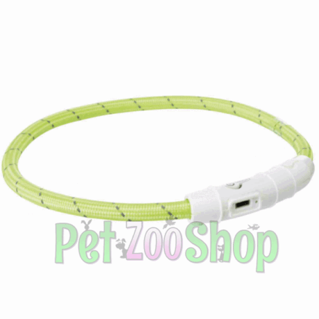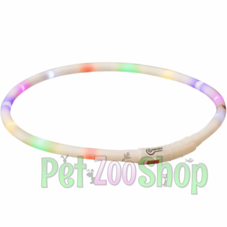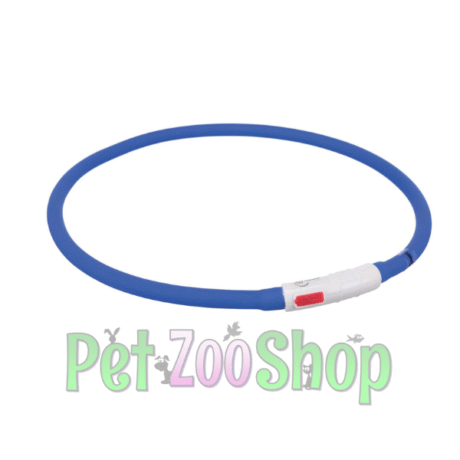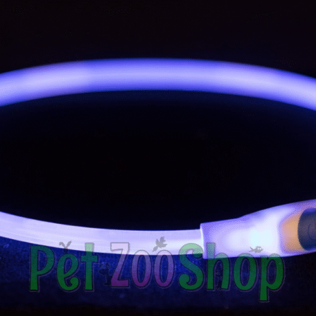 USB svetleća ogrlica za pse od silikona sa klik-zatvaračem. Pruža do 3.5 h trepćućeg ili 1.5 h konstantnog svetla, vodootporna i lako se podešava jednostavnim sečenjem. USB kabl uključen.