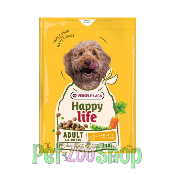 Happy Life Adult Chicken je raznovrsna i ukusna suva hrana sa piletinom, namenjena živahnim odraslim psima. Formulisana je kao 100% potpuna i izbalansirana ishrana, koja obezbeđuje sve ključne nutrijente potrebne za svakodnevnu energiju, vitalnost i dobro opšte zdravlje.
