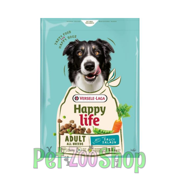 Happy Life Adult Salmon je raznovrsna i ukusna suva hrana sa lososom, namenjena živahnim odraslim psima. Formulisana je kao 100% kompletna i uravnotežena ishrana, koja obezbeđuje optimalan odnos proteina, masti, ugljenih hidrata, vitamina i minerala za svakodnevnu energiju i vitalnost.