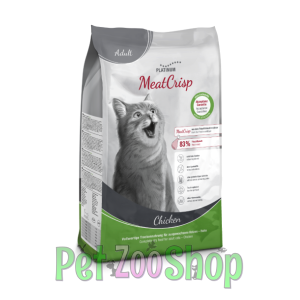 Platinum MeatCrisp Adult Piletina je kompletna i visokokvalitetna suva hrana za odrasle mačke, proizvedena inovativnom Freshmeatdryer metodom. Ovaj poseban proces omogućava očuvanje prirodnih mikronutrijenata, aminokiselina i punog ukusa koji potiču direktno iz svežeg mesa.