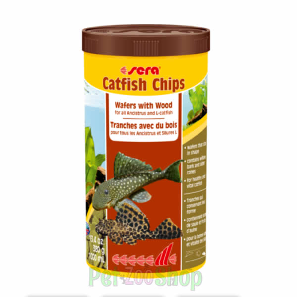• Sera: Catfish Chips je hrana za algojede koja sadrži čestice drveta neophodne za ishranu algojeda.