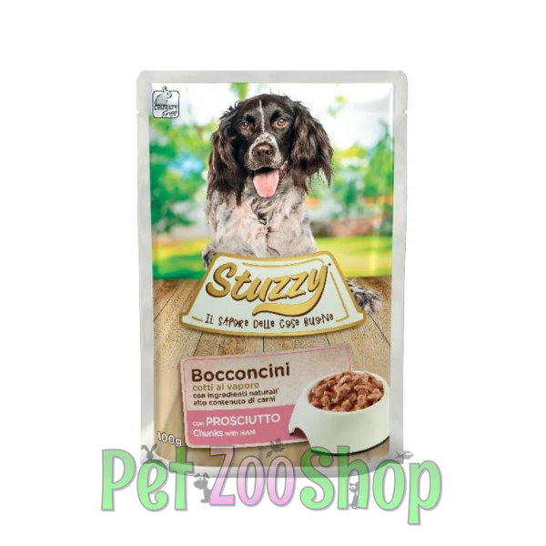 Stuzzy Chunks preliv sa komadićima šunke predstavlja ukusan i nutritivno izbalansiran obrok namenjen ishrani odraslih pasa. Pripremljen od prirodnih sastojaka, ovaj preliv sadrži komadiće šunke kuvane na pari, čime se čuvaju prirodan ukus i hranljive vrednosti mesa.