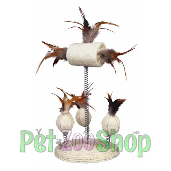 Igračka za mačke od loptica od lufe na federima, ukrašenih perjem