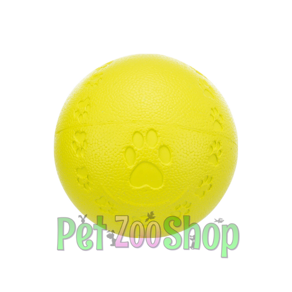 Gumena lopta za pse izrađena je od kvalitetne prirodne gume, što je čini izdržljivom, elastičnom i idealnom za svakodnevnu igru. Dizajnirana je da podstakne psa na trčanje, donošenje i aktivnost, a istovremeno je nežna prema zubima i desnima.